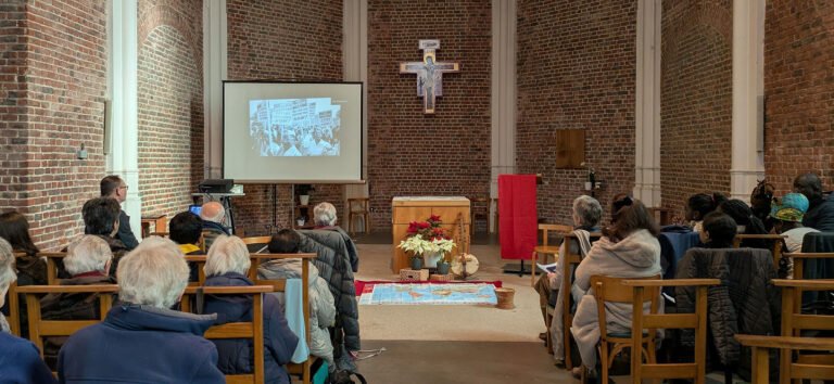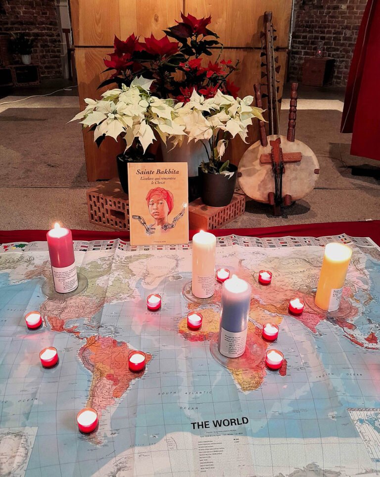 On Saturday afternoon, February 7, about sixty people, including members of ten religious congregations, gathered at the Church of the Blessed Sacrament – la Viale Europe in Brussels to commemorate Saint Bakhita and to pray and denounce human trafficking and modern slavery.