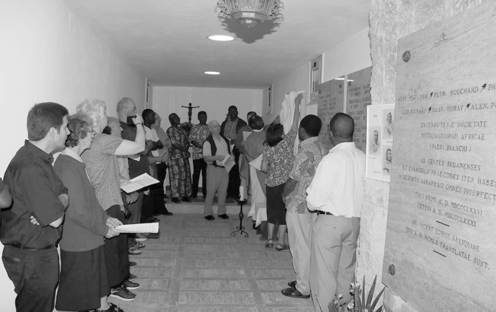 Father Stanley, Superior General of the M.Afr. blesses the commemorative plaque.This is more than just a reminder that we all have to die (memento mori). We wish to celebrate this offering, this firm desire to be all for God by our sisters (and brothers). It is there that their life and ours meet today because we have all offered our life to God and it is from their example that we can draw strength, courage and zeal.