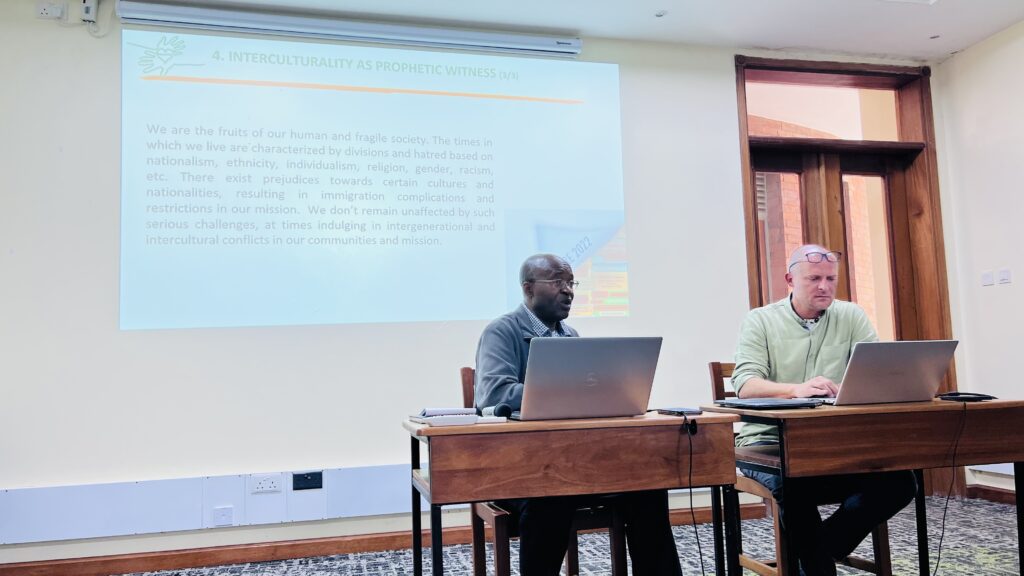 Le père Apollinaire Chishugi, un confrère à Nairobi, a été invité à présenter une réflexion au Conseil Plénier sur le thème « Entretenir la solidarité et l’appartenance à la Société ». Il a donné une conférence stimulante, s’appuyant en partie sur la parabole du Bon Samaritain (Luc 10, 25-37). À travers cette parabole, il a présenté la solidarité comme l’amour de notre prochain et de nous-mêmes. Il a également utilisé l’histoire de Jésus et de la Samaritaine, dans l’Évangile selon saint Jean 4, pour illustrer la vie missionnaire comme une solidarité réciproque. Enfin, il a articulé un autre point qu’il a appelé le besoin insatisfait de renouveler le sens de la solidarité et de l’appartenance. Tout au long de sa présentation, il a donné des exemples concrets, y compris personnels, pour montrer que, quelle que soit notre origine, l’amour nous unit et devrait toujours nous unir. Néanmoins, il a mis nos supérieurs au défi en soulignant des domaines qui nécessitent plus d’attention. Il a notamment abordé les craintes et les incertitudes qui envahissent certains confrères, ainsi que la nécessité de valoriser les confrères.