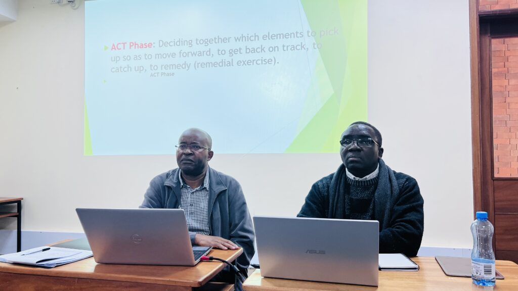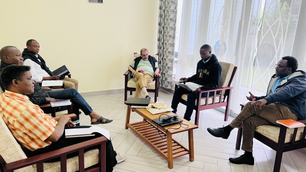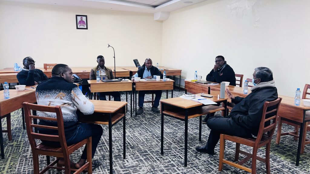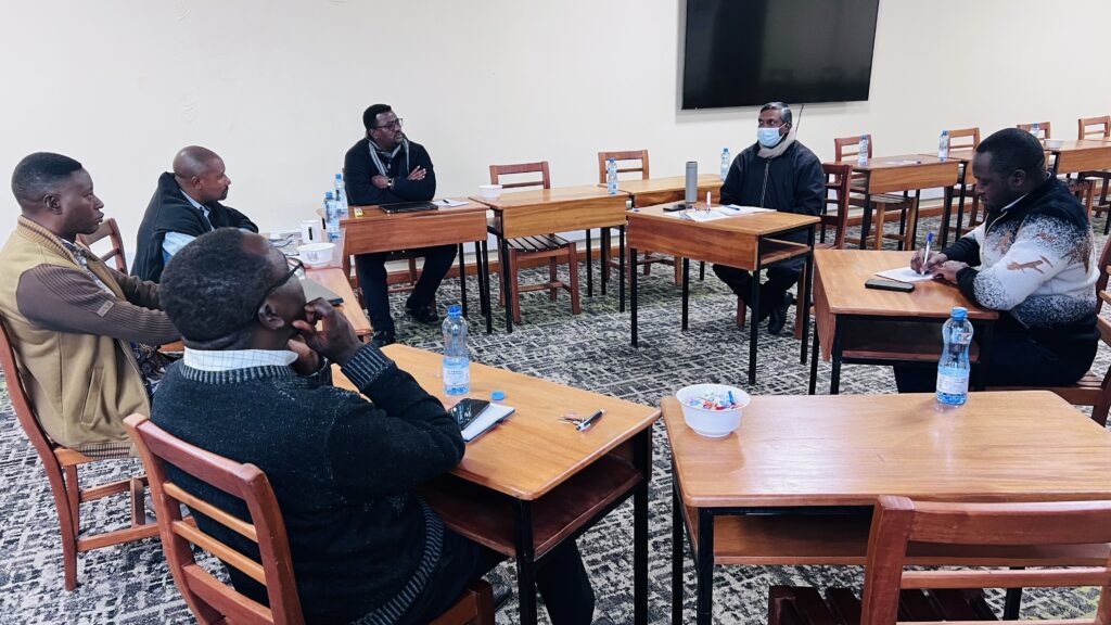 Après la prière du matin, les participants se sont retrouvés dans la salle de réunion. Tous les participants attendus sont arrivés à Nairobi. Le Supérieur Général, P. Stanley Lubungo, a pris le temps de les accueillir et de rappeler quelques questions pratiques, notamment l’utilisation de Google Drive, qui permettra de réduire l’utilisation du papier. Le calendrier des trois semaines a ensuite été présenté, ainsi que les trois groupes pour les sessions en équipe.
