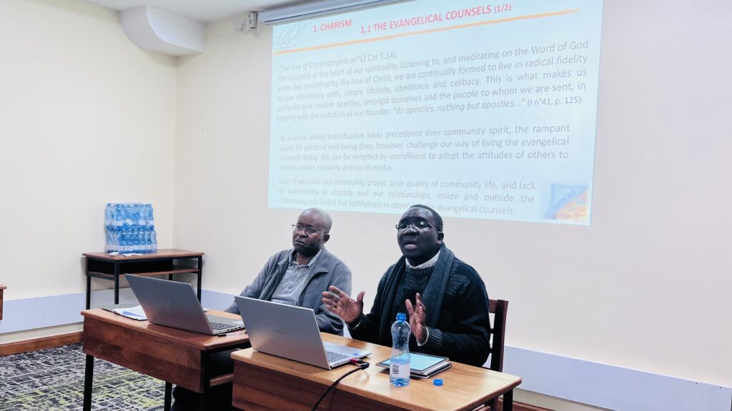 Le Supérieur Général a ensuite ouvert les Actes Capitulaires, en commençant par le premier point consacré au charisme. Comme le stipulent les Actes, le charisme « nous identifie et oriente notre mission ». Il a affirmé que les caractéristiques qui définissent notre charisme peuvent être résumées par la passion pour Dieu et la passion pour l’humanité. Le père Stanley a ensuite abordé les conseils évangéliques, démontrant leur relation intrinsèque avec notre charisme. Il a souligné l’importance de l’accompagnement spirituel, insistant sur le caractère fraternel de nos communautés. Pour notre Supérieur Général, « les conseils évangéliques constituent le moteur même de la vie consacrée ».