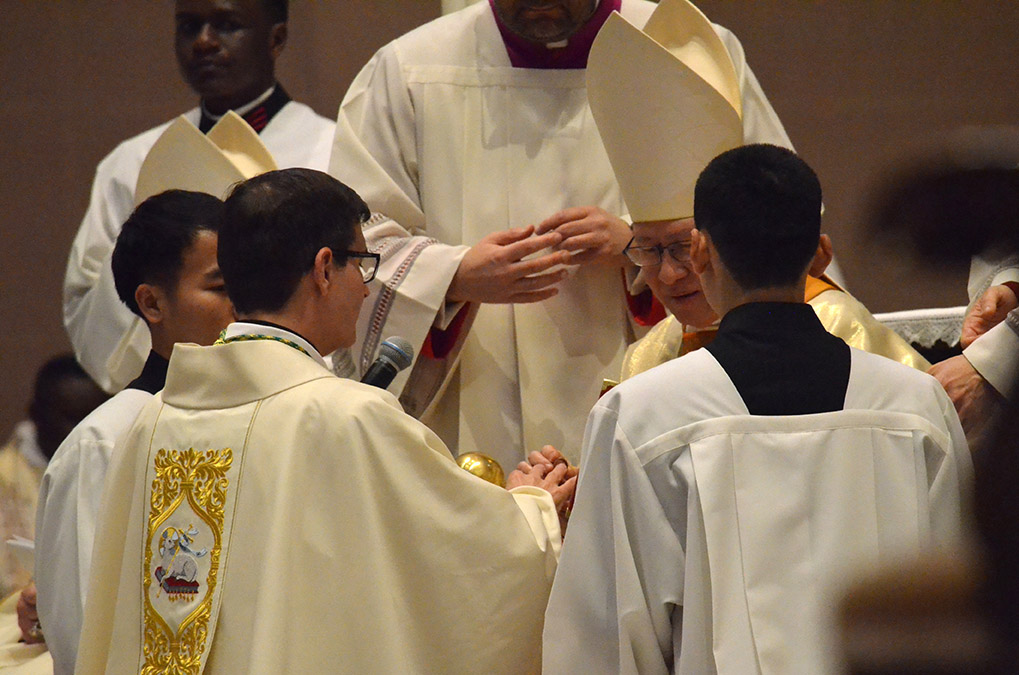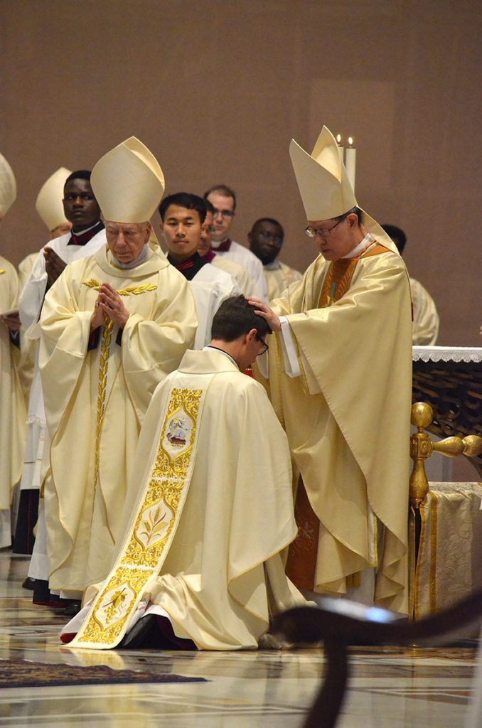 At the beginning of his homily, His Eminence Cardinal Louis Antonio Gokim Tagle, expressed the gratitude of all present to God for bringing everyone together on the solemnity of St. Joseph for the ordination of the two bishops. While thanking God for the gift of the two bishops, the Cardinal also thanked God for their generous response to the call of God transmitted through Pope Francis. He invited all present to pray for the families of the two bishops, the dioceses of Milan in Italy and Laghouat in Algeria as well as the Missionaries of Africa.