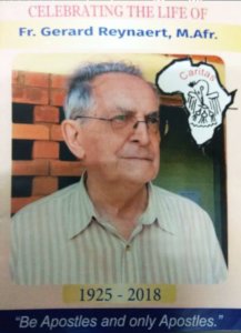 Fr. Gerard Reynaert (1925-2018) popularly known as “mukulu” passed away on 03.05.2018 at Nsambya Hospital in Kampala. He lived 67 years of Missionary Life and almost all of them in Uganda. At 93, he was still the local bursar/guest master at lourdel house-vocations centre and chaplain to a community of Little Sisters of Saint Francis at Nsambya. The following was written about him in the Order of Mass celebrating his life: