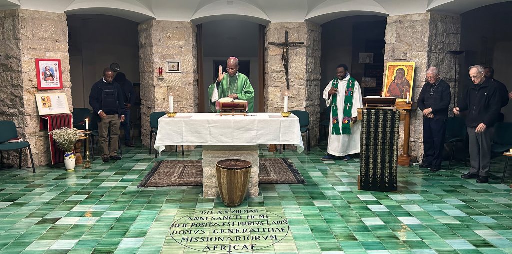 Ce jeudi 30 janvier 2025, la communauté de la Maison Généralice à Rome s’est réunie pour célébrer l’Eucharistie présidée par Mgr Placide Lubamba, M.Afr., évêque du diocèse de Kasongo en République Démocratique du Congo (RDC). Cette célébration s’est vécue en communion avec la population de Goma en RDC, durement éprouvée ces derniers jours par la guerre et ses conséquences.