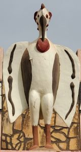 -Son bec fermé et posé sur le ventre symbolise la maîtrise de sa langue : le jeune initié doit savoir maitriser sa langue, être discret et faire surtout attention à ne pas dévoiler ce que l’on apprend dans le bois sacré.