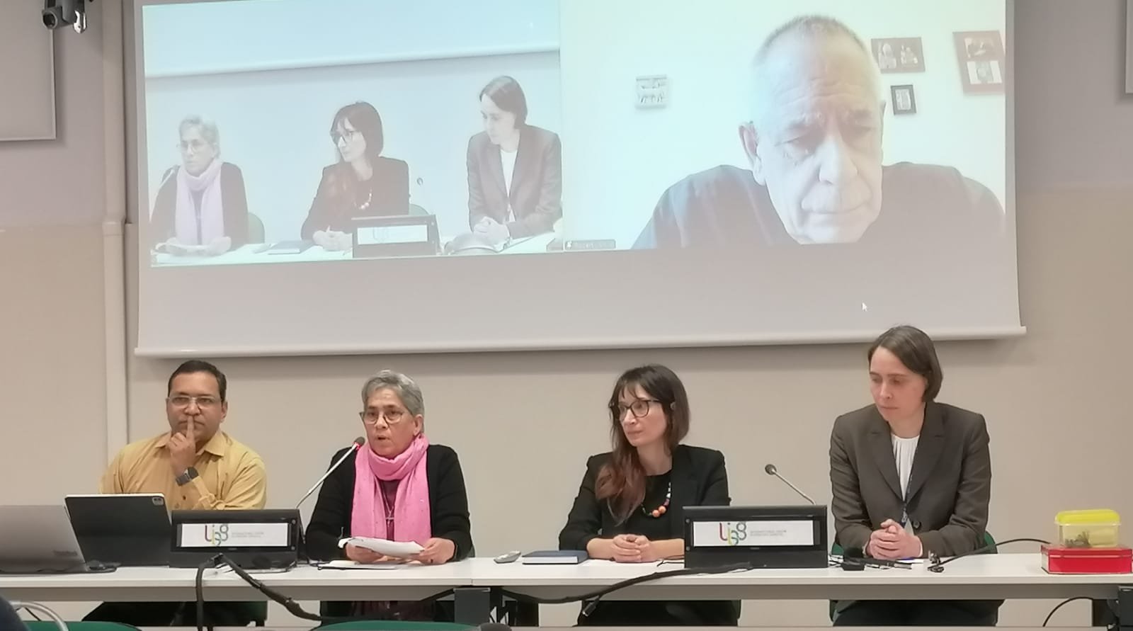De gauche à droite : P. Roy Thomas, SVD ; Sr Gretta Fernandes, SpSS ; Gaia Mormina – Secrétaire Générale de la Fondation Scalabrini ; Judith Behnen – Senior Major Gift Officer Jesuit Refugee Service (JRS) ; Mons. Robert Vitillo, Conseiller principal de la Section Recherche et Réflexion-Dicastère pour la promotion du développement humain intégral (sur écran).Deuxième jour de l’atelier JPIC : L’enseignement social de l’église et la transformation systémique