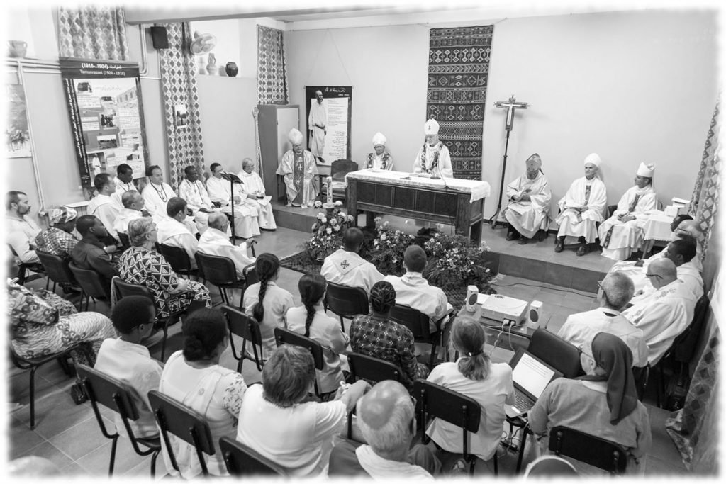 Au cours de la célébration de l’installation de Mgr John à GhardaïaCe diocèse qui t’est confié est extrêmement vaste et, comme nous le savons, le désert est ta cathédrale. Tu auras, comme le suggèrent tes armoiries, à piloter la barque de l’Eglise locale sur une mer de sable ou, si tu préfères, à suivre à travers les dunes, et faire suivre ton peuple, l’Agneau immolé qui est toujours vivant. Pourtant cet immense espace n’est nullement un ‘Quart Vide’. Je suis certain que tu découvriras que partout l’amour de Dieu t’a précédé. En disant cela, je pense à tes prédécesseurs sur le siège de Laghouat : Charles Lavigerie, Charles Guérin, Henri Bardou, Louis David, Gustave Nouet, parmi les ‘ancêtres dans la foi’, et ceux que j’ai connus moi-même, Georges Mercier, Jean-Marie Raimbaud, Michel Gagnon, et Claude Rault, ton prédécesseur immédiat que nous avons le bonheur d’avoir présent avec nous aujourd’hui. Je pense aussi à tous les Missionnaires d’Afrique, hommes et femmes, et les autres prêtres, religieux, religieuses et laïcs, qui ont contribué à la vie et à l’apostolat du diocèse, et puis également à ceux et celles qui se trouvent actuellement dans le diocèse et que tu es appelé à conduire comme le Bon Pasteur. Je prie donc que tu puisses comprendre la largeur, la longueur, la hauteur, la profondeur de l’amour de Dieu, afin que tu puisses être comblé jusqu’à recevoir toute la plénitude de Dieu (cf. Eph. 3, 18), à partager ensuite avec d’autres.