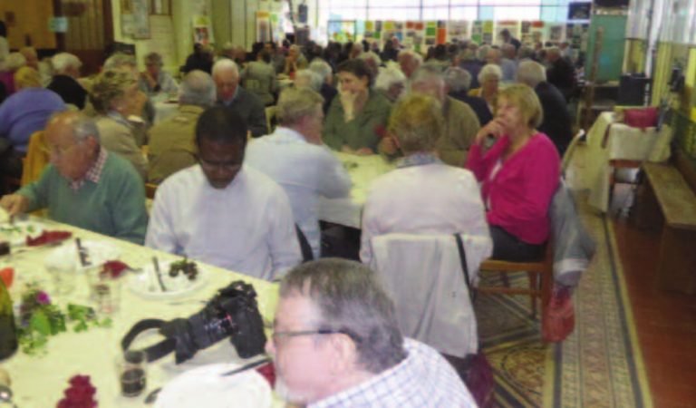 Nous avons réalisé notre projet d’accueillir à Mours pour le 150è anniversaire 150 personnes ! Même si les conversations étaient parfois rendues difficiles à cause du nombre, la joie était bien présente et les remerciements se sont multipliés à la fin du repas quand les gâteaux du 150è ont été présentés par le personnel de la cuisine, alors qu’à l’extérieur la pluie tombait.