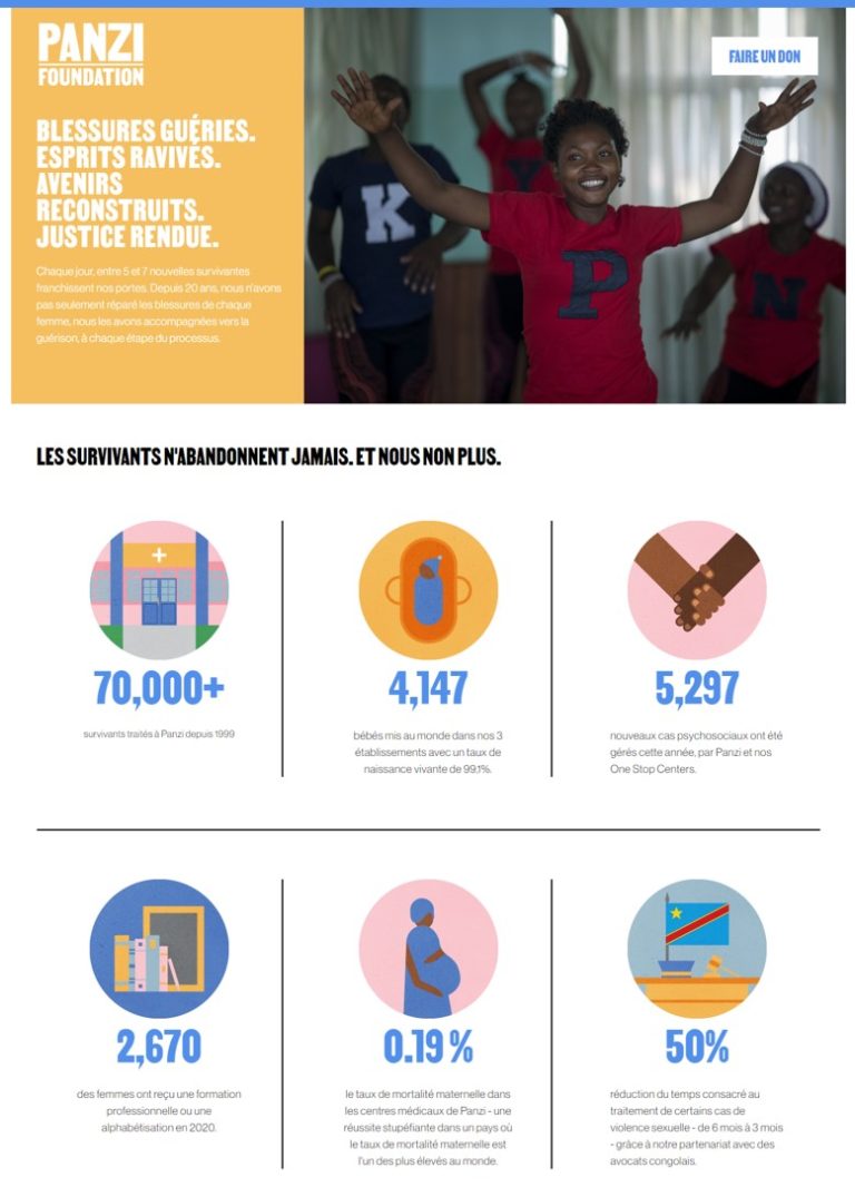 Au niveau local, on peut citer la Fondation Panzi initiée par le Prix Nobel de la Paix, le Dr Denis Mukwege qui s’occupe de la santé maternelle et des mutilations génitales pratiquées sur les femmes violées. Il existe aussi des réseaux d’entraide chrétiens et des bureaux d’écoute comme la Caritas diocésaine, le centre Nyota à Bukavu, (où est engagé notre confrère, le père Bernard Ugeux), qui accueille des jeunes filles analphabètes et victimes des viols et des enfants délaissés, pour les aider à recouvrer l’estime de soi. Les patrouilles nocturnes des policiers et des militaires, l’éclairage public dans les quartiers et les avenues de la ville et ses environs sont autant de programmes de lutte contre la violence et l’insécurité.