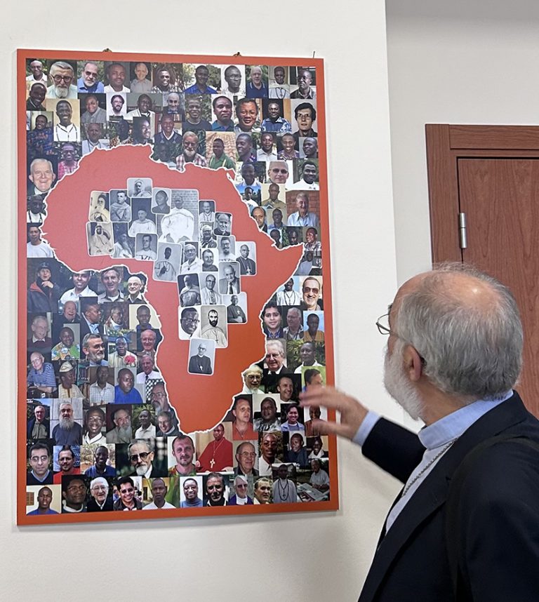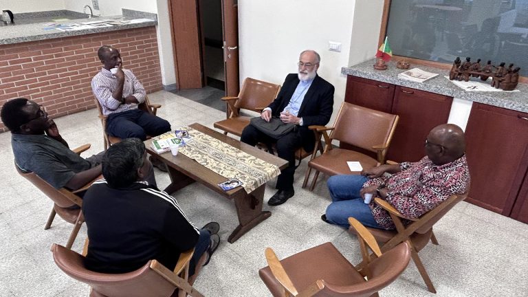 Visite du Cardinal Cristobal Lopez Romero Posted on 26/10/2023 by Vitus Danaa AboboVisite du cardinal Cristobal Lopez Romero à la Maison Généralice des Missionnaires d'Afrique à RomeLe mardi 24 octobre, vers midi, nous avons reçu la visite du cardinal Cristobal LopezRomero, archevêque de Rabat au Maroc.Le cardinal Cristobal est actuellement à Rome et participe à la troisième phase du synode, où les évêques et les autres participants invités discernent et construisent ensemble la prochaine étape du voyage synodal de l’Église. La visite avait un caractère amical et fraternel.Premièrement, le cardinal a partagé avec le Conseil Général sur la présence des Missionnaires d’Afrique au Maroc. Rappelons qu’en septembre 2022, nous avons ouvert une nouvelle communauté à Rabat avec la présence de deux confrères : Albert Kondemodre (Bfa) et Oscar Garcia Padilla (Mex). A présent, un troisième confrère, Modeste CubakaTebuka (RDC) a rejoint l’équipe. Le cardinal a exprimé sa gratitude pour la nouvelle communauté et pour l’engagement des confrères dans la vie du diocèse : Albert aide à la paroisse cathédrale et est coordinateur de la pastorale pénitentiaire, Oscar est directeur de Caritas au Maroc et Modeste est en train d’apprendre l’arabe littéraire sur place. Deuxièmement, le cardinal a partagé avec nous sur les réalités de l’Eglise au Maroc et quelques réflexions concernant le déroulement du synode à Rome. Nous sommes très reconnaissants envers le cardinal Cristobal pour sa visite dans notre Maison Généralice et pour son assistance paternelle envers nos confrères présents au Maroc. Nous souhaitons au cardinal beaucoup de force intérieure dans la mission sur la terre marocaine.Que notre Dame du Maroc, qui est Notre Dame du chemin, marche avec nous pour que nous arrivions tous ensemble à la maison du Père.Pawel Hulecki (M.Afr) Assistant Général Related Posts:Lettre pastorale de Mgr Desfarges, Archevêque d'AlgerVivre le célibat avec intégrité (réservé aux Miss.…Turbulence et Re-définition dans la Société,…Communiqué du Chapitre - Photos de la Messe FinaleUn autre confrère créé CardinalFormation dans la Société (PE n° 1087 - 2018/01)
