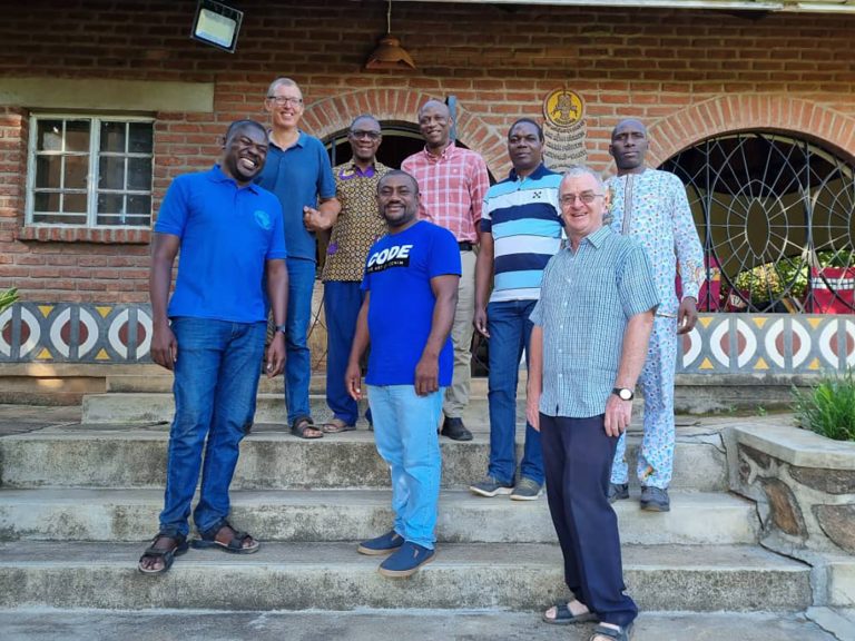 From left to right : Mathew W. Banseh (Centre for Social Concern (CfSC)), Bernhard Udelhoven (Lumimba parish) Zambia, Ignatius Anipu (Institut de Formation Islamo-Chrétienne (IFIC)) Mali, Philip Meraba (Faith and Encounter Centre, Zambia (FENZA)) Zambia, Anselme K.A. Tarpaga (Assistant General) Rome, Prosper Harelimana, Rome, Brendan O’Shea (Kungoni Centre of Culture and Art, Malawi), Malawi, Bruno Ssennyondo (Centre de Recherche pour la Sauvegarde et la promotion de la Culture Senoufo (CRSPCS)) Mali
